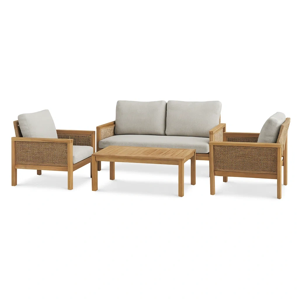Set da conversazione in Legno e Vimini con Cuscini Beige